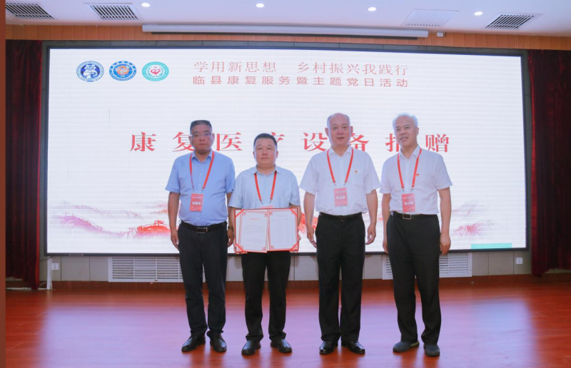 7月29日上午,在临县宾馆东二楼大会议室举行了“学用新思想,乡村振兴我践行”——临县康复服务暨主题党日活动启动仪式,中国国际科技交流中心主任苏小军、中国康复医学会秘书长李云波、临县县委常委高文标出席,中国康复医学会副秘书长钟铁军主持。高文标在致辞中表示,本次活动是惠及临县人民群众的一件大好事大实事,对推动临县医疗卫生事业持续发展具有十分重要意义,饱含着各位领导、专家对临县人民的深情厚意,充分彰显了一心为民的真挚情怀。各位领导、专家给我们带来的不仅仅是先进的医疗技术,更是巩固拓展脱贫成果、推进乡村振兴的精神鼓舞,必将为临县的医疗事业快速发展注入新的活力。李云波在致辞中指出:相信在大家的共同努力下,本次服务活动一定能够高质量完成,取得实在成效,希望通过本次活动开展,实现促进提升对康复医疗工作重要性的认识,促进构建完善基层康复服务体系,促进基层康复医疗人才培养和队伍建设,促进基层康复医疗的服务能力提高。在启动仪式上,中国康复医学会向临县中医院授予“中国康复医学会单位会员”牌匾,与临县中西医结合医学会签订了技术帮扶协议,捐赠由学会高级会员单位河南翔宇医疗设备股份有限公司提供的10台件、价值17.77万元康复医疗设备。本次帮扶签约和康复设备捐赠,建立了帮扶机制,明确了帮扶目标和内容,对于提升改善基层医疗卫生技术服务能力和条件,助力基层康复医疗振兴具有重要意义。