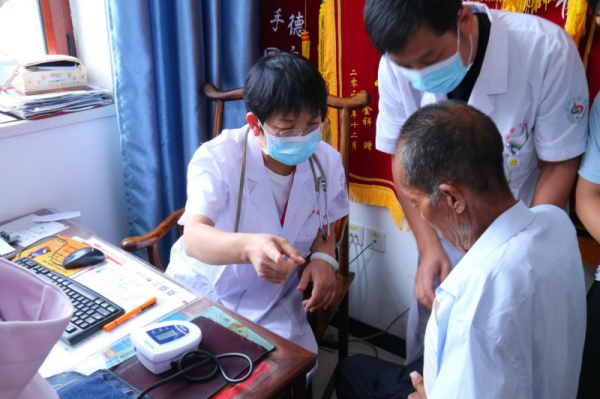 在张阳会村为困难家庭患者入户诊疗及捐赠轮椅