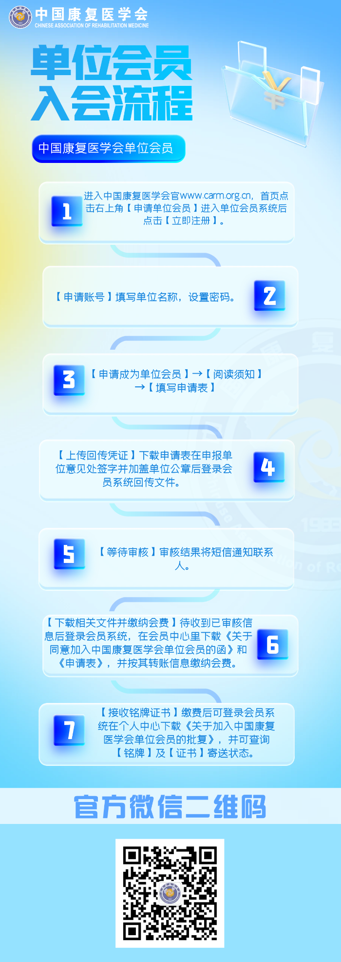 6、【下载相关文件并缴纳会费】待收到已审核信息后登录会员系统,在会员中心里下载《关于同意加入中国康复医学会单位会员的函》和《申请表》,并按其转账信息缴纳会费。