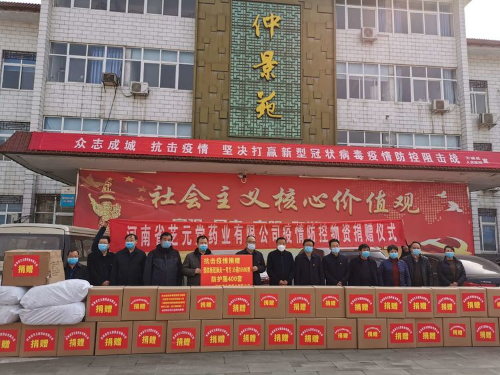 捐物资献爱心,助抗疫显担当。2020年,公司第一时间向市、县两级战“疫”一线工作机构和工作人员无偿捐赠救护车2辆、防护衣3000套、中药饮品3950余箱、口罩28万余个、医用酒精1000壶、额温枪300个,向埃塞俄比亚和莫桑比克驻中国大使馆各捐赠口罩22000片,捐赠的各类防疫物资累计总价值600余万元。