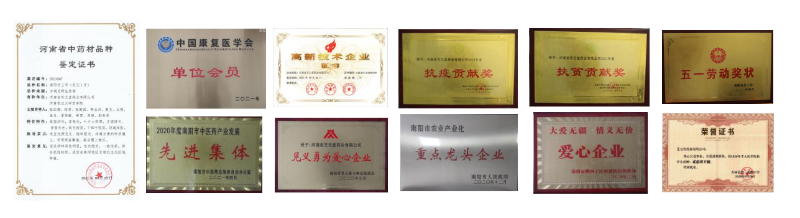 公司现有配方花茶上百种,其中药食两用配方花茶42种。2003年通过“原产地域?;げ贰比现?, 2007年获全国农博会“创新奖”,2008年被评选为“河南省名牌产品”、“河南最具影响力的十大地理标志产品”,种植基地通过国家食品药品监督管理局GAP认证,被确定为“河南十大中药材种植基地”、“河南省中药材规范化种植示范基地”、“南阳市科技示范基地”。