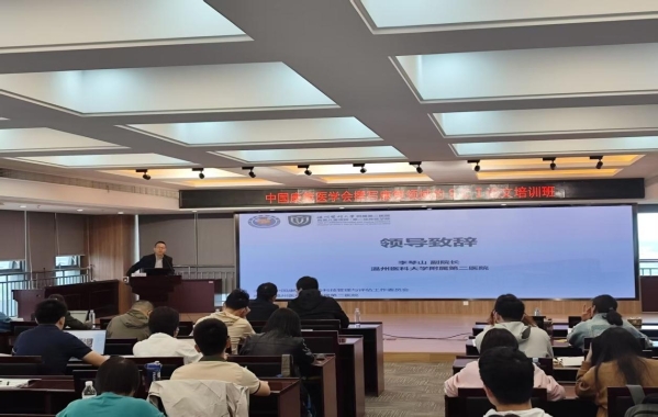温州医科大学附属第二医院副院长李琴山培训班开幕式上致辞,介绍了医院康复医学中心(温州市康复医院)在医教研、成果转化及国际交流方面取得的显著成就,并对参加培训的学员表示热烈欢迎。