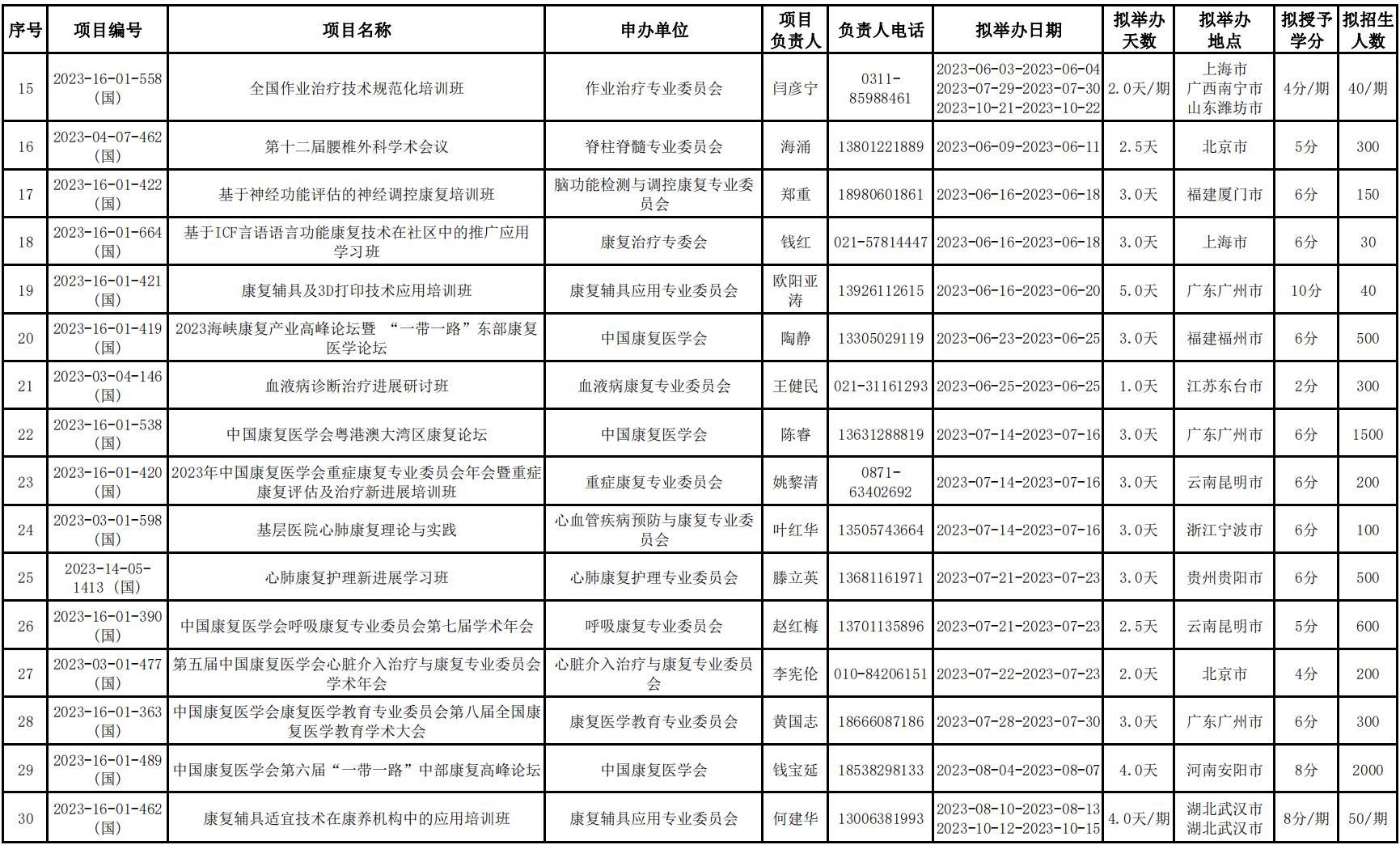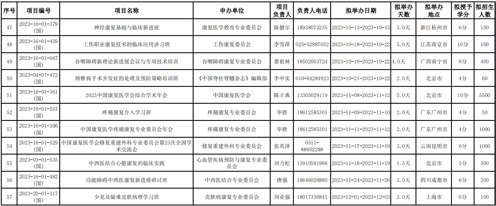 中国康复医学会获批2023年第二批国家级继续医学教育项目(备案项目)名单