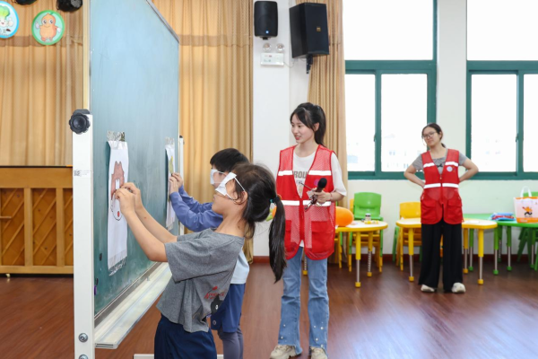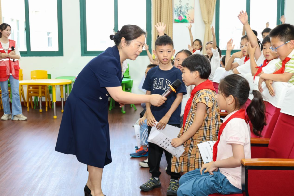 活动伊始,“黑暗体验”环节就让孩子们直呼“震撼”——闭上眼睛感受一分钟后,有小朋友立刻说:“原来看不见这么害怕!”紧接着,《?;ぱ劬Α肥质莆杌盍Φ浅?,跟着节奏摆动的小手,把“护眼要记牢”的种子悄悄种进心里。 最受欢迎的是“爱眼研究所”,眼科医生朱晨蕾用《做个不近视的‘电眼’学霸》为题,用童趣语言讲透眼睛结构、近视成因。孩子们举着小手抢答“三个一”读写姿势、科学用眼时长,连平时坐不住的小调皮都坐得端端正正。 趣味环节一个接一个:《护眼大作战》脱口秀逗得全场捧腹; “营养补给站”带孩子们认准胡萝卜、蓝莓等“护眼小卫士”; “视力闯关王”知识竞赛检验学习成果; “蒙眼贴五官”“‘筷’乐投篮”更让孩子们切身体会——没了清晰视力,连简单动作都变难了! “医生阿姨讲得太有趣了!我以后一定注意用眼卫生?!倍?)班李同学举着刚领的《爱眼护眼知识宣传手册》说?;疃殖?,表现积极的同学还拿到了“护眼小卫士”荣誉证书,每人一份的彩色《21天护眼打卡表》更是成了“新宠”。“这个打卡表真漂亮!我要每天认真完成?!倍?)班小美捏着卡片,眼睛弯成了小月牙。 “这种边玩边学的方式特别好,孩子们在笑声里记住了护眼知识?!笔笛樾⊙Ю鲜Φ阍薜?。 此次活动是我院关爱青少年健康的又一次实践。未来,我们将继续推出更多形式多样的健康科普活动,用“医”份用心,守护孩子们的“睛”彩未来。