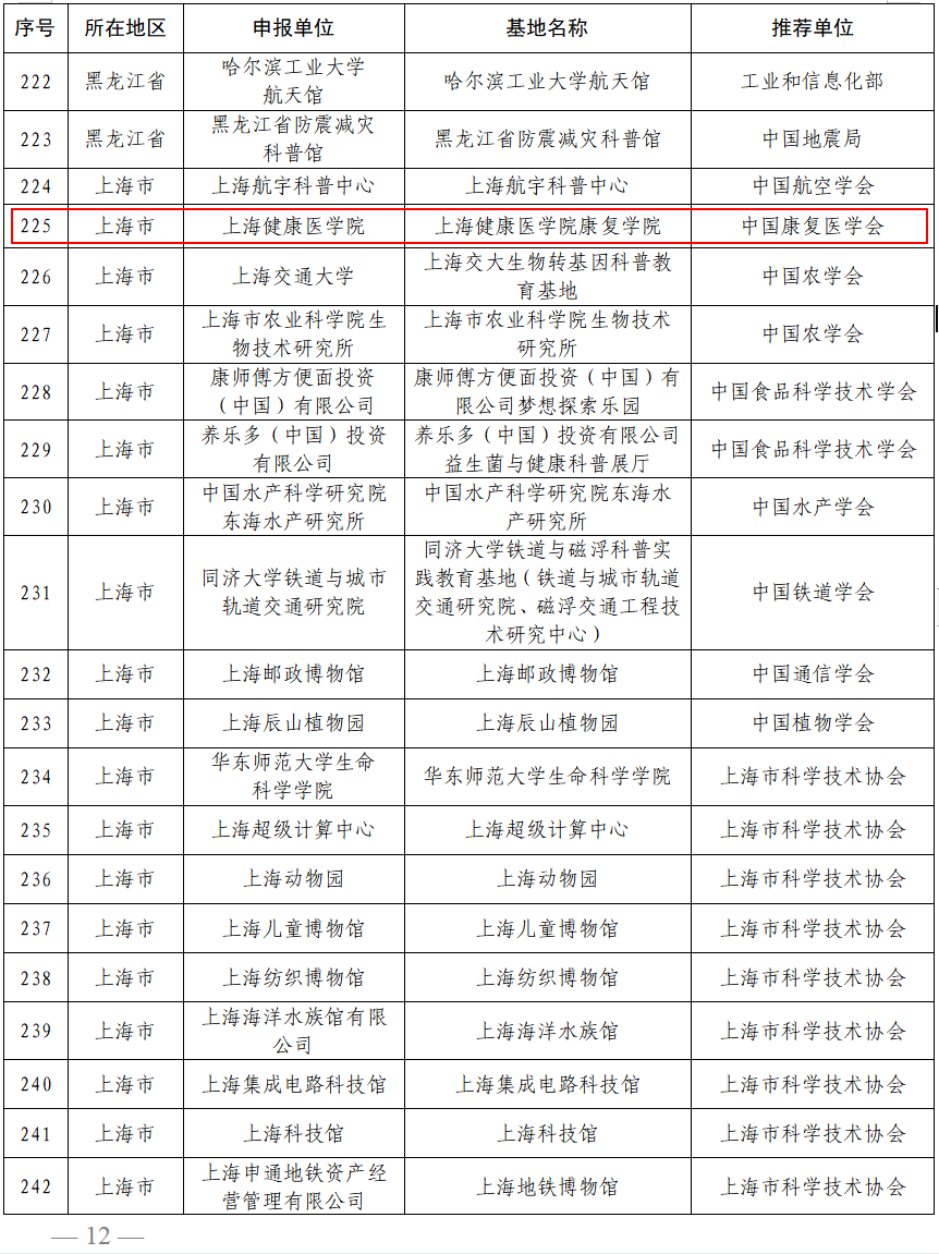 近日,中国科协发布了2021-2025年第一批全国科普教育基地名单,中国康复医学会推荐的上海健康医学院(康复学院)成功入选。