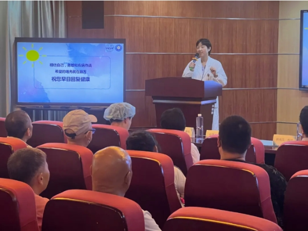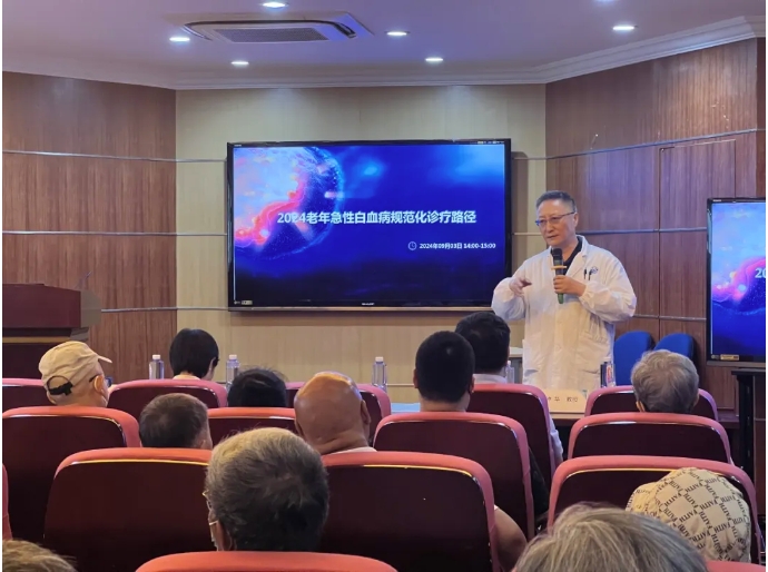 首先侯健教授在活动致辞中,着重强调了急性白血病规范化治疗的关键性。他指出:“急性白血病已不再是不可逾越的医学难题,通过规范的治疗,患者们有望实现疾病治愈的目标?!彼粲趸颊呙且ㄆ诩嗖獠∏椋Χ灾瘟浦械奶粽?,共同提高生活质量。 随后,钟华主任向患者讲解急性白血病疾病特点,明确诊断及评估病情需要进行的检查,同时向广大病友介绍了目前的治疗手段除了传统化疗外靶向治疗、免疫治疗、造血干细胞移植技术使白血病治疗的疗效逐年提高。他强调急性白血病的治疗是一个长期的过程,从检查、确诊、治疗、康复并不是一蹴而就,需要医护人员、患者及患者家属携手一起努力。 韩晓凤主任向大家介绍了急性白血病患者的日常自我管理。在治疗期间病友们可能会出现一些不良反应引起不适症状,患者不要惊慌或过度担忧,经过及时有效的对症处理后一般均可控制,居家时,要注意饮食安全和卫生,注意环境卫生和通风,预防感染或出血,出现一些特殊情况要及时就医。坚持定期检查予随访,保持积极心态,为接下来的治疗做好准备。 钟华主任、韩晓凤主任与倪蓓文、张旻玥副主任等一道为前来咨询的病友及其他群众提供了个性化的健康教育及用药指导, 赢得了大家的广泛赞誉。 参与此次活动的白血病患者中,有些患友在经过规范化的治疗后,已能够回归正常生活和工作,他们也愉快的分享了和疾病抗争的经历,为其他新患友鼓劲,提升他们战胜病魔的信心和勇气。此次活动使他们更加深入地了解了急性白血病的规范诊疗流程,对全程管理的重要性有了更为清晰的认识。病友们纷纷表示,希望未来能有更多类似的活动,以帮助他们更好地控制疾病,享受健康的生活。 随着这场科普活动的圆满落幕,我们期待更多的社会力量能够关注急性白血病群体,共同推动科学的治疗方法在患者中的普及。随着医疗手段的更新,新药不断出现,白血病已不再是“绝症”,医患携手,让“爱不留白,愈见新生”。