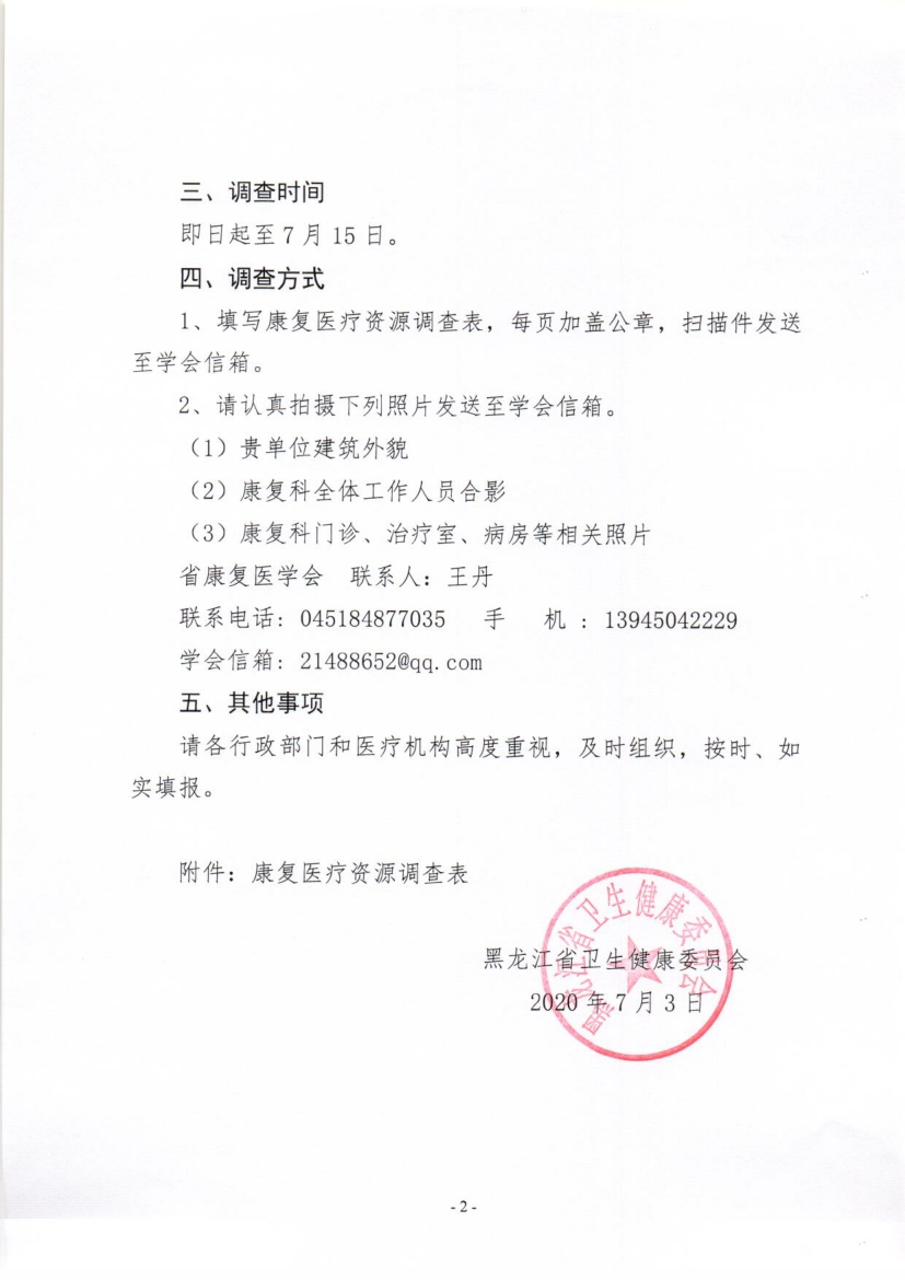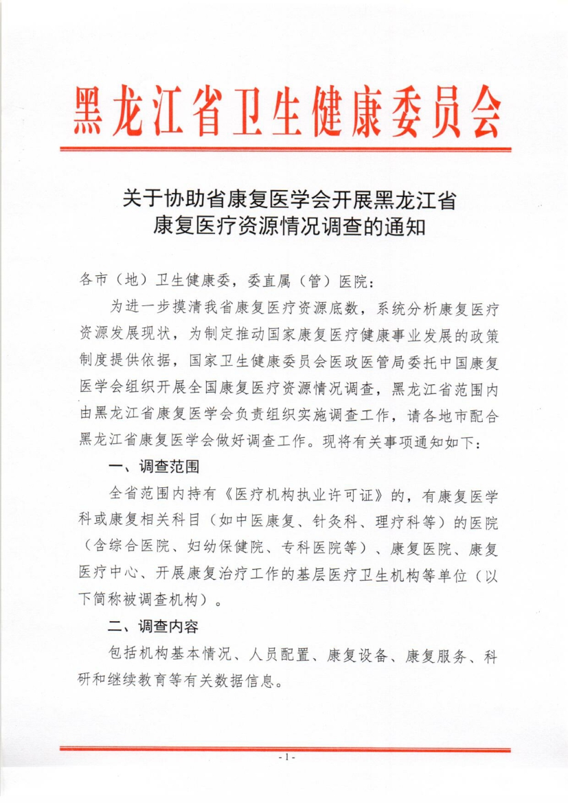 (黑龙江省)关于协助省康复医学会开展黑龙江省康复医疗资源情况调查的通知
