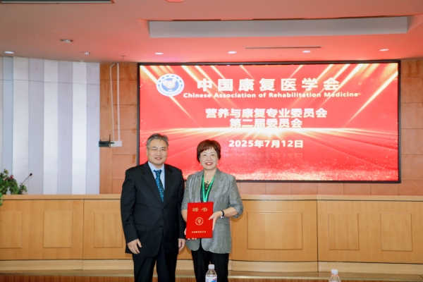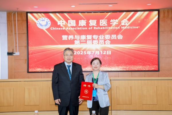 名誉主任委员蔡美琴和主任委员韩婷为中国康复医学会营养与康复专业委员会第二届委员会常务委员颁发聘书