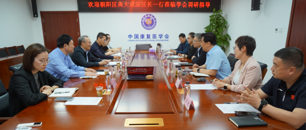 5月14日上午,北京市朝阳区政府曲大成副区长率区政府办公室副主任方向华、区科协党组书记冯守华、区卫生健康委副主任李恒宁、中关村科技园区朝阳园管理委员会产业促进二处副处长李鑫等一行,专程到访中国康复医学会进行座谈交流。中国康复医学会党委书记、常务副会长兼秘书长彭明强,副秘书长杜昆及学会相关部门负责人参加会议,会议由杜昆副秘书长主持。